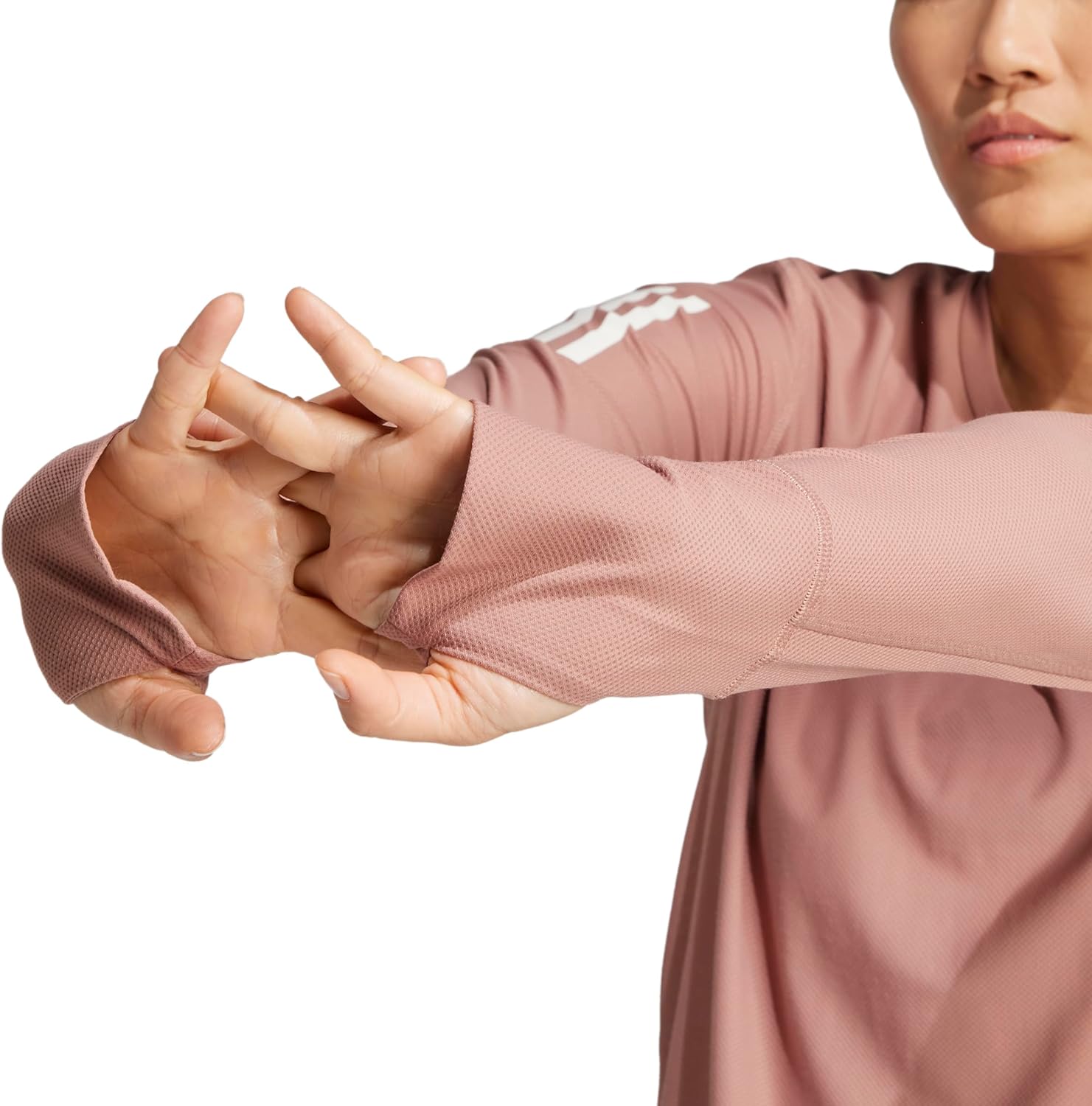 You can own every mile in this women's adidas long sleeve running t-shirt. It's built with AEROREADY technology to keep you dry and comfortable on distance runs or high-intensity interval training sessions. Plus, reflective details shine in low light.