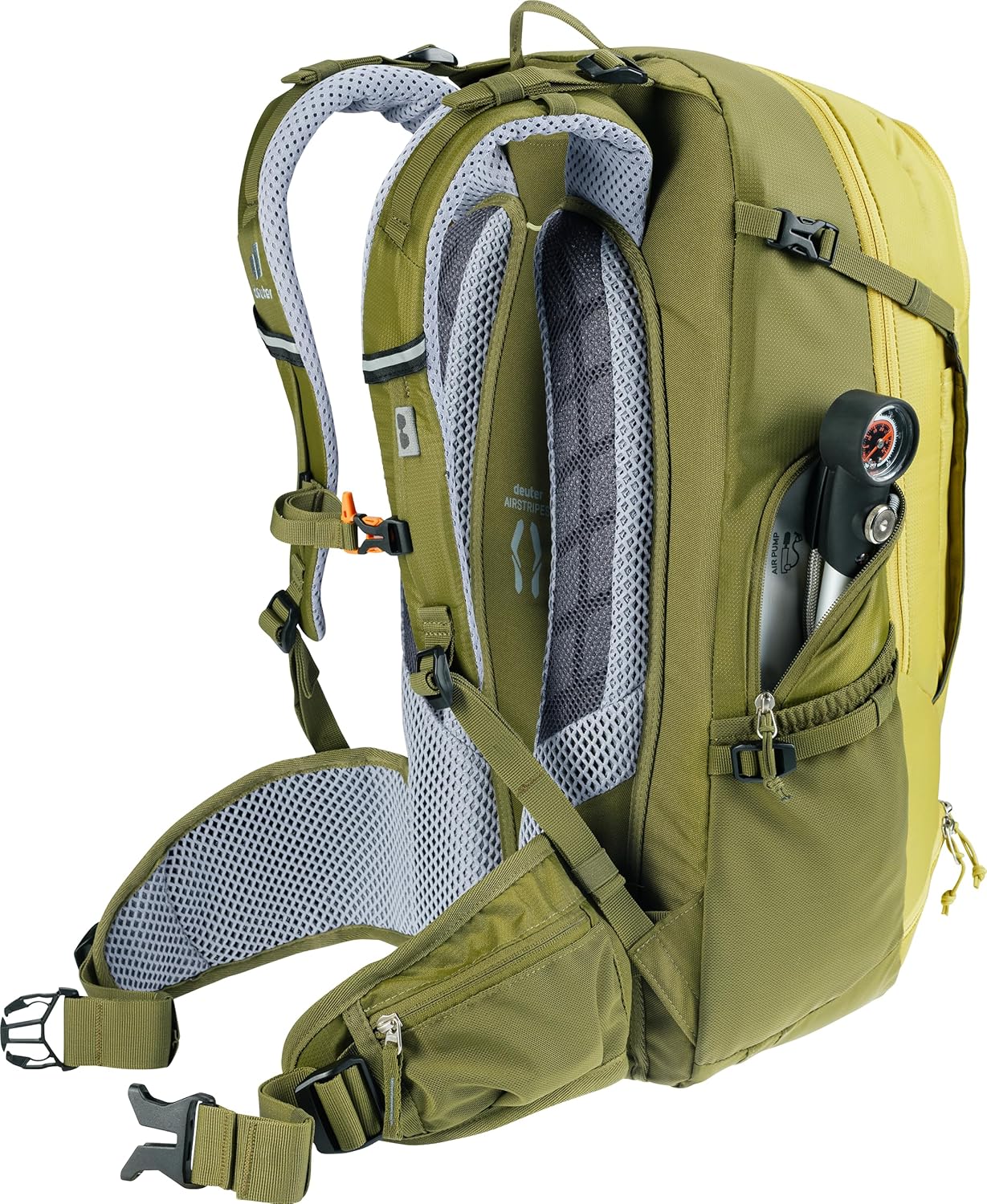 The Trans Alpine is for mountain bikers who are looking for a secure-fitting multi-day backpack with comfortable back ventilation and clever storage options. Thanks to the main material made from recycled materials and environmentally friendly, resource-saving components, the bluesign product meets the Green Button requirement and is also climate-neutral, PFAS-free and thus makes a clear statement in terms of sustainability. Thanks to years of experience and constant further development, the space miracle is one of the most sophisticated products on the market and is often the first choice for crossing the Alps by mountain bike. The well thought-out compartment divisions, such as tool and pump compartments, the functional front pocket, in which the helmet is also safely stowed, and the subdivisible main compartment provide the ideal organisation and quick access that you want on multi-day tours. The air-permeable Airstripes back system guarantees good ventilation of the back and sits compactly on the body even on sporty trails. In addition, the chest strap and ventilated hip fins keep the pack optimally in position, even when the going gets rough.