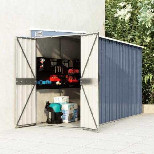 Introducing our wall-mounted garden shed, a practical addition to your outdoor storage solutions. Designed with a sleek gray finish, this galvanized steel shed not only enhances the aesthetic of your patio, garden, or backyard but also offers a reliable way to keep your tools and equipment organized. Equipped with a secure cam lock, this shed prioritizes safety, ensuring your belongings are protected from unauthorized access. Its robust construction is tailored to withstand various weather conditions, minimizing the impact of rain, snow, and sun exposure, which prolongs the life of your stored items. The user-friendly plastic handle allows for easy opening, combining convenience with durability. With dimensions of 46.5 inches wide, 76.4 inches long, and 70.1 inches high, this rectangular shed provides ample space for your gardening tools, outdoor gear, and much more. Weighing 6531.5 pounds, it is solidly built yet easy to mount, making it suitable for both seasoned garden enthusiasts and busy homeowners looking to declutter their outdoor spaces. Assembly is required, and we recommend enlisting the help of two people for a smooth setup. Enjoy a tidy and efficient outdoor area with this versatile garden shed, designed to meet your storage needs while enhancing your home's exterior. Transform your outdoor experience today with this essential storage solution.