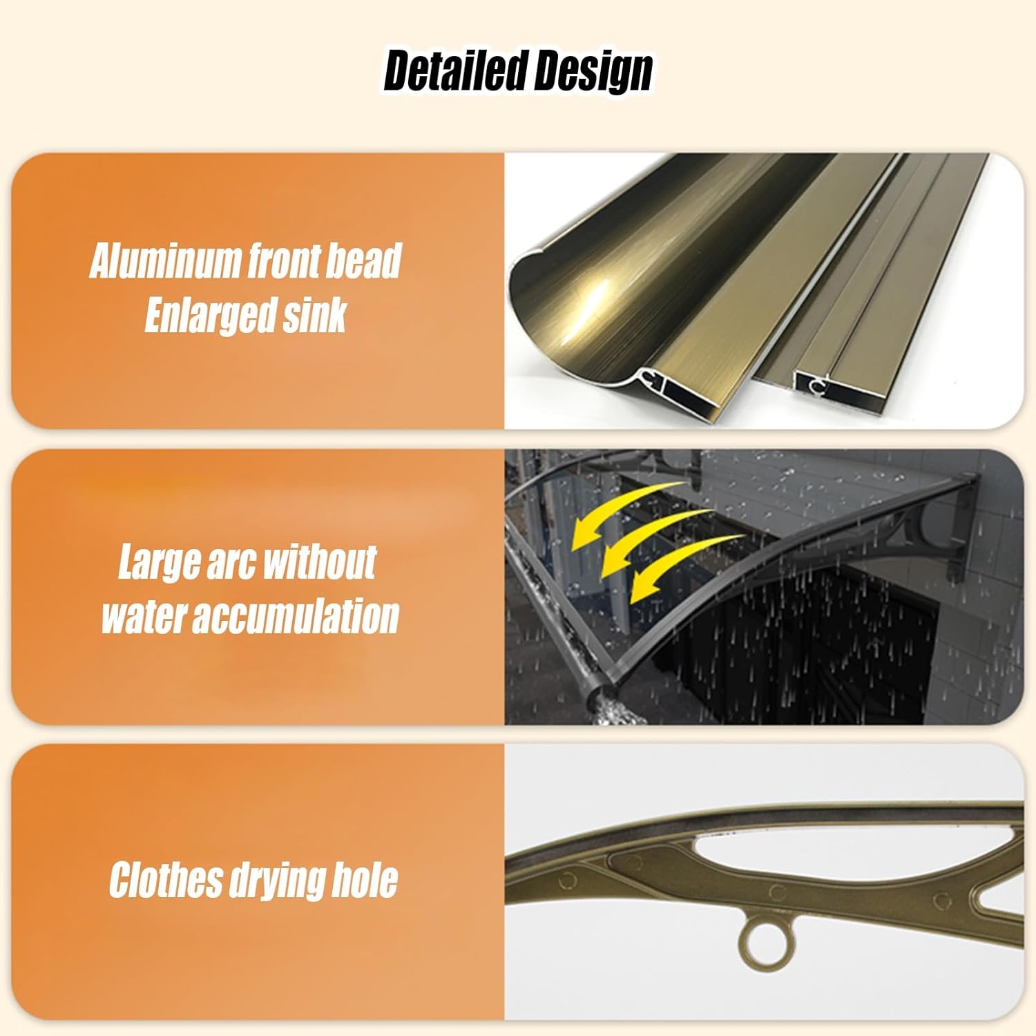 The door and window awning is a highly versatile option, ideal for front and rear doors, bedroom windows, balconies, swimming pools, cafes, offices, and commercial streets.Features:1. Window awning aluminum alloy frame has strong load-bearing capacity and can withstand strong winds and heavy snow.2. LYXWGRZD Door Awning effectively reduces the sound of rain on rainy days, providing you with a more comfortable environment3. This Awning Door has a variety of color options to help you better decorate your home4. Note that as the size increases, the number of joints required increases, and the number of frame structures will gradually increase.Name: Window Awning, Door Canopy, Awning Door, Hollow Sheet, Canopy UV Rain, Awning Polycarbonate Cover, Window Awning OutdoorSpecifications:Color: Gray, Brown, Blue, TransparentMaterial: Aluminum Alloy, Polycarbonate PanelsSize: Size Reference Size PicturePackage: Aluminum Alloy, Polycarbonate Panels, Screws, Rubber StripPurchase Notice:Due to factors such as light, shooting, and display, there may be differences between the product image and the actual color. Please refer to the actual product!This product is measured manually, and there may be a slight error of 1-5 cm. Please refer to the actual product for details.