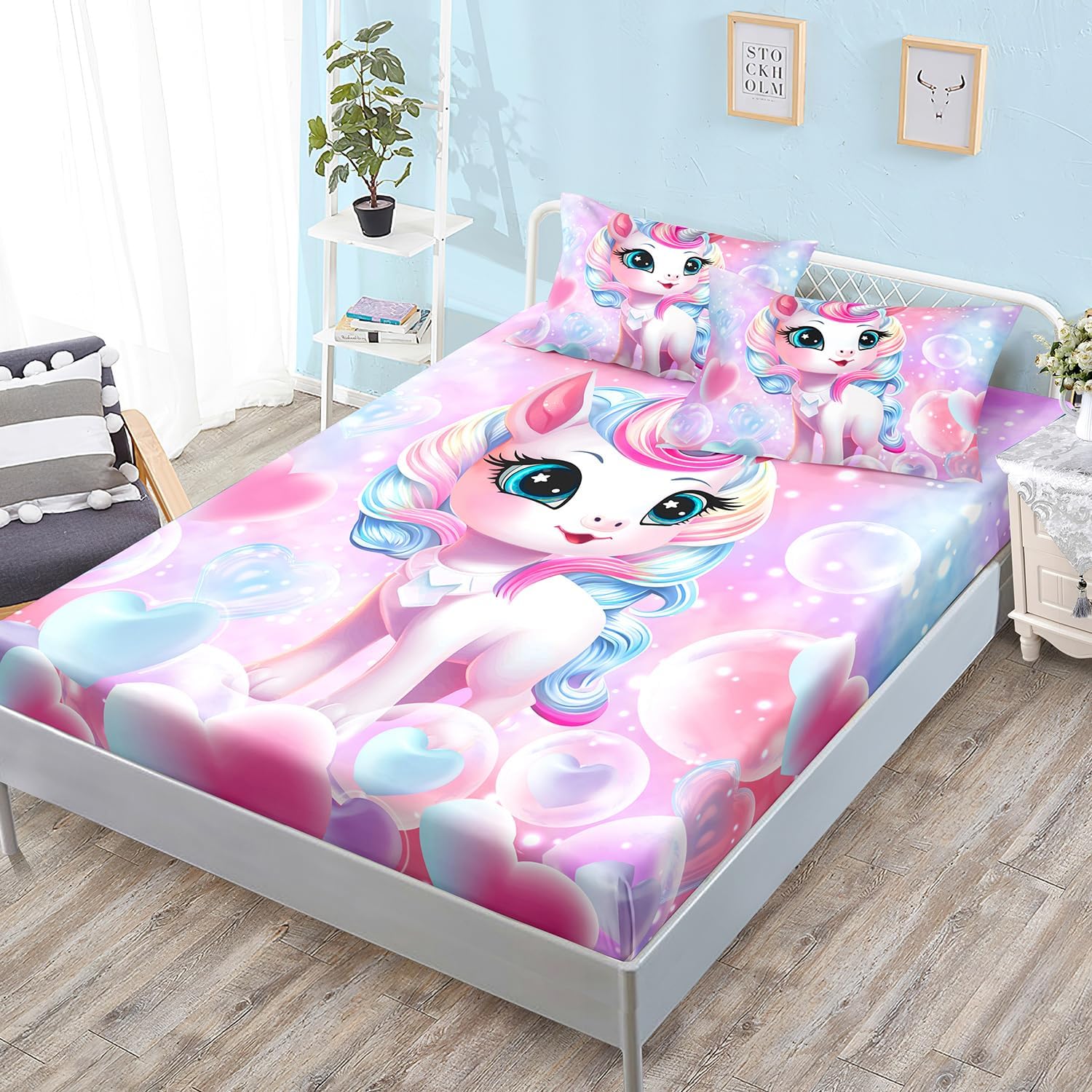 Package Includes:1x Fitted sheet2x PillowcasesEasy CareMachine wash in cold water, gentle cycle, tumble dry low, do not bleach.Size InformationTwin sizeFitted sheet: 39"W x 75"Lx15"H inchesPillowcase: 20 x 30 inchesFull sizeFitted sheet: 55"W x 75"Lx15"H inchesPillowcase: 20 x 30 inchesQueen sizeFitted sheet: 61"W x 81"Lx15"H inchesPillowcase: 20 x 59 inches