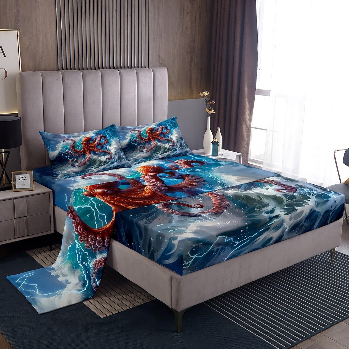 Our bed sheet is made of polyester fabric, lightweight and soft; stylish design is very suitable as room decoration for boys and girls; keep warm in winter and cool in summer; create a comfortable sleeping environment to make you fall asleep all night Range of size 1 twin fitted sheet 39 inch x 75 inch x 16 inch and 1 twin flat sheet 66 inch x 96 inch and 1 standard pillowcase 20 inch x 30 inch 1 full fitted sheet 54 inch x 75 inch x 16 inch and 1 full flat sheet 81 inch x 96 inch and 2 standard pillowcase 20 inch x 30 inch 1 queen fitted sheet 60 inch x 80 inch x 16 inch and 1 queen flat sheet 90 inch x 102 inch and 2 standard pillowcase 20 inch x 30 inch 1 king fitted sheet 78 inch x 80 inch x 16 inch and 1 king flat sheet 90 inch x 106 inch and 2 standard pillowcase 20 inch x 36 inch