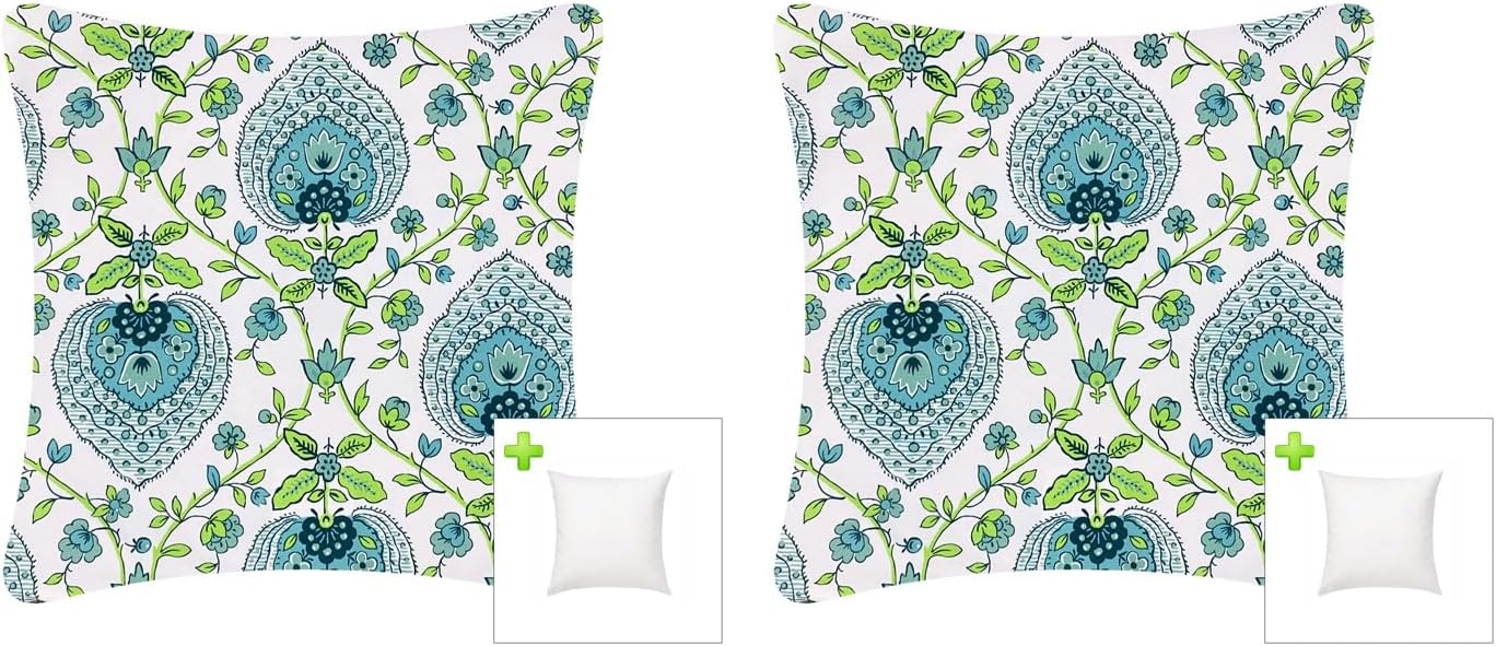 Do you want a 18x18 inch green color paisley pattern outdoor pillows that had excellent water resistant and fade resistant, it will not fade under the direct sunlight for more than 500 hours. FBTS Prime brings you the High quality outdoor decorative pillows. You will love this patio throw pillows that each one is with a puffy pillow insert.DESCRIPTION- Packing: includes 1 pc outdoor pillow cover and 1 pc pillow insert.- Color and pattern: green, paisley.- Material Features: Durable polyester fabric. Water resistant, it will not fade under the direct sunlight for more than 500 hours.- Insert Features: High grade fiber filling and microfiber fabric cover.- Dimension: 18x18 inches, Square, suit most of patio furniture.- Zipper: Hidden zipper closure.TIPS- Due to different monitor display, product color may slightly different from what you seen on website.- Measurements may vary up to 1 inch since item is handcrafted.CLEAN INSTRUCTIONS- Spot clean only, use sponge and warm water if needed.- Scrub and wipe until pillow cover is clean.- Hang out until pillow cover is dry thoroughly.- Do not wash, do not dry clean, do not iron, do not bleach, do not tumble clean.RETURN POLICY- If for any reason you are not satisfied, send a simple email and receive a fully refund, absolutely no questions asked!