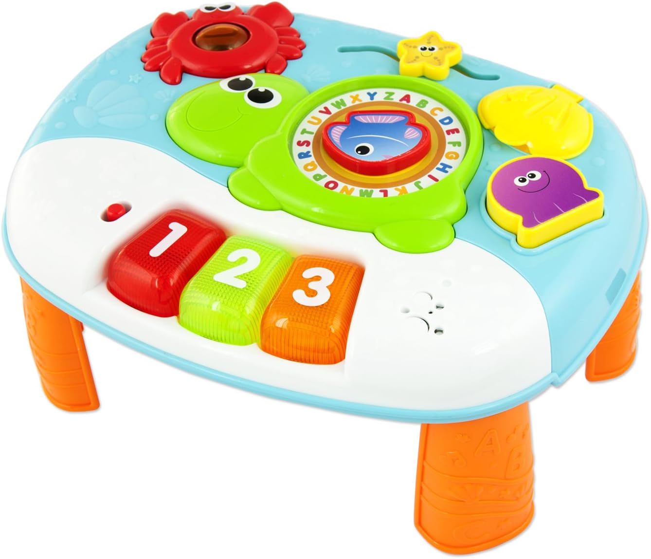 | Included Components | 3-in-1 Activity Center and Play Table, 4 Activity Pods: turning click-clack bird, fun ball popper, spinning ferris wheel, baby-safe mirror, sliding spinners, Detachable Froggy Rattle, Easy-Clean Snack Tray, Soft Seat Pad with 3 Adjustable Height Positions |