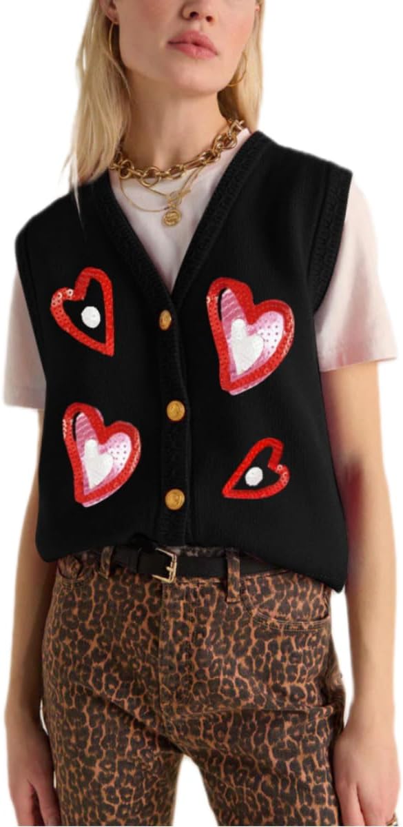 Women Christmas Sweater Vests Santa Claus Print Sleeveless Knit Cardigan Vest Christmas Holiday Tank Top