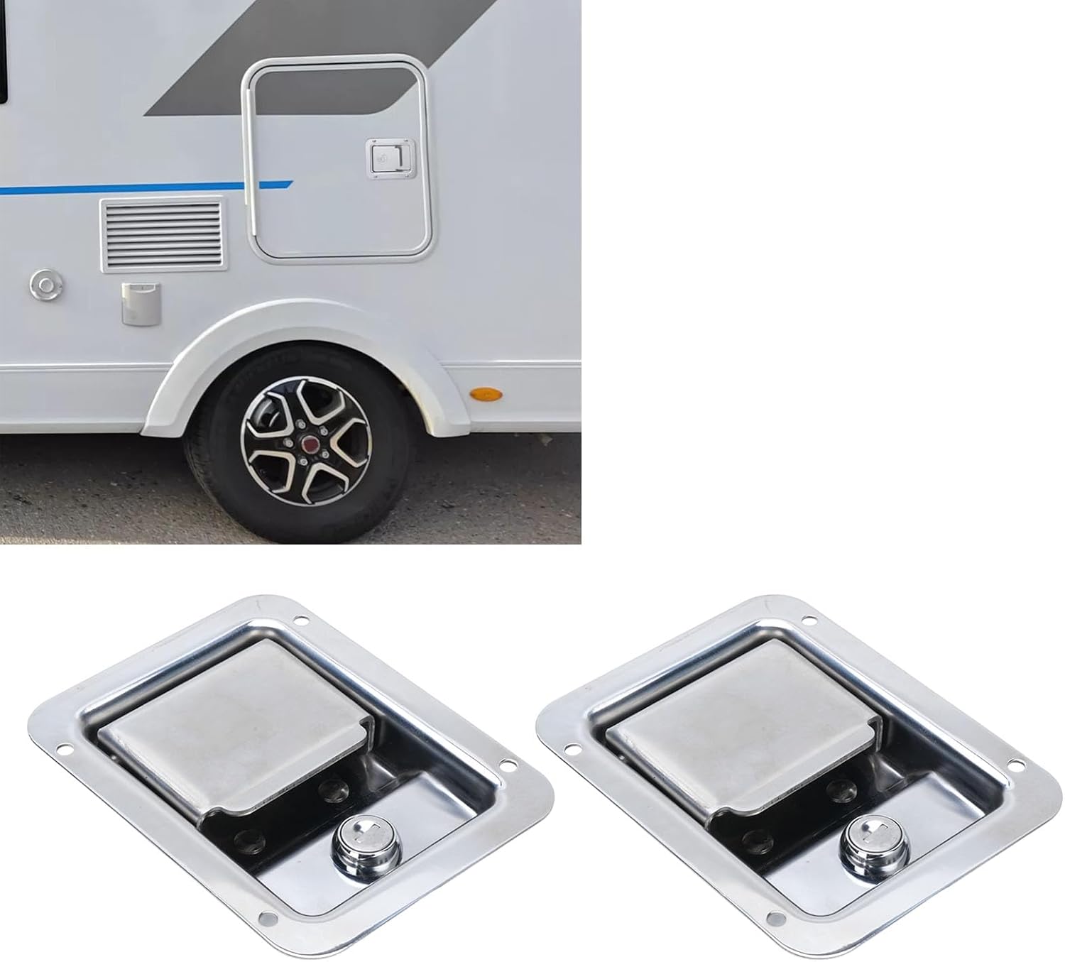 2Pcs Stainless Steel Toolbox Latch, 140x108mm Flush Mount Handle with Keys Sealing Gasket, for Truck RV Motorhome Tool Box Cabinet Door Up to 21mm ThicknessItem Type: Toolbox Panel LockMaterial: Stainless Steel, Mirror Polished SurfaceInstallation Type: Embedded, Screw FixedExternal Dimensions: Approx. 140 x 108mm / 5.51 x 4.25in, with two matching keysInstallation Hole Size: Approx. 115 x 85mm / 4.53 x 3.35inSuitable for Maximum Door Thickness: Approx. 21mm / 0.83inSuitable Scene: Easily replace damaged or worn latches, used for electrical cabinet, toolbox, power distribution cabinets, control cabinets, vehicles toolbox, Truck, RV, etc.Package List:2 x Toolbox Panel Locks4 x Keys2 x WashersNote:Installation requires drilling holes, professional engineers are recommended to assist in installation to ensure the better shopping experience