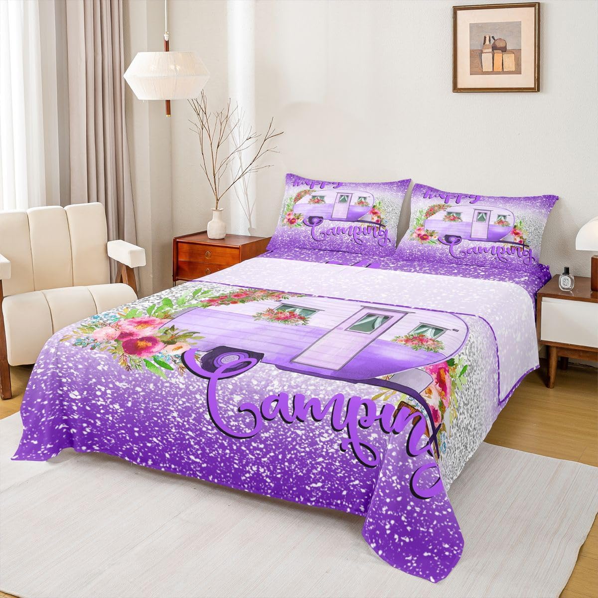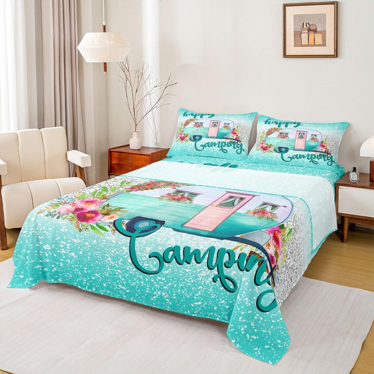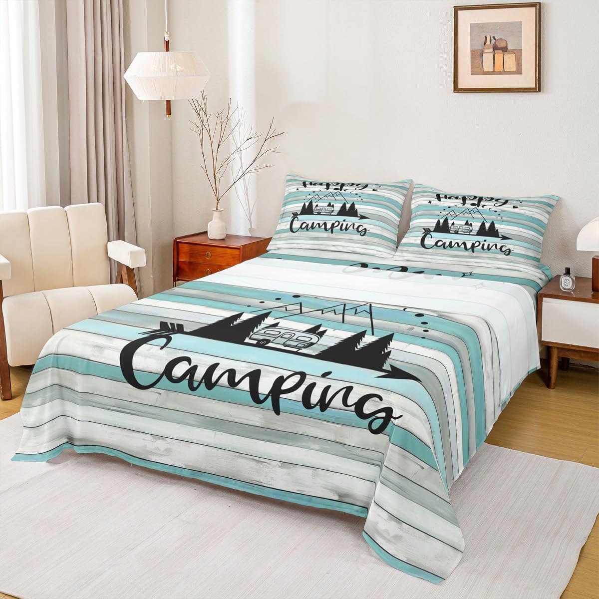 Welcome to our store. We have specialized in home textile for many years.We are committed to providing customers with comfortable products. Size Imformation Twin size: 1 Fitted Sheet (39"x75"x16"), 1 Flat Sheet (96"x66"), 1 Pillowcase (20"x30"). Full size: 1 Fitted Sheet (54"x75"x16"), 1 Flat Sheet (96"x81"), 2 Pillowcases (20"x30"). Queen size: 1 Fitted Sheet (60"x80"x16"), 1 Flat Sheet (102"x90"), 2 Pillowcases (20"x30"). King size: 1 Fitted Sheet (78"x80"x16"), 1 Flat Sheet (106"x90"), 2 Pillowcases (20"x36"). Versatility We have many kinds of styles for you to choose.You can easily find a product that suits the style of your room. The item is not only fits your home (bedroom, guest room, living room, etc) or RV, but also a present for holidays or anniversaries (Chiristmas, New Year, Halloween, Thanksgiving day, birthday) for people who you love (your families, friends, relatives, boyfriend,girlfriend). Modern Design The luxury aesthetic bedding sheets are made by reactive printing and dyeing process. The pattern is clear, the color is lasting and bright, which will not fade after repeated washing. No harmful chemicals or dye substance. Personalized As a manufacturer of digital printed home textiles, we follow current trends and bring you the latest and stylish home textile products. The item will make the room decorated in exquisite taste.