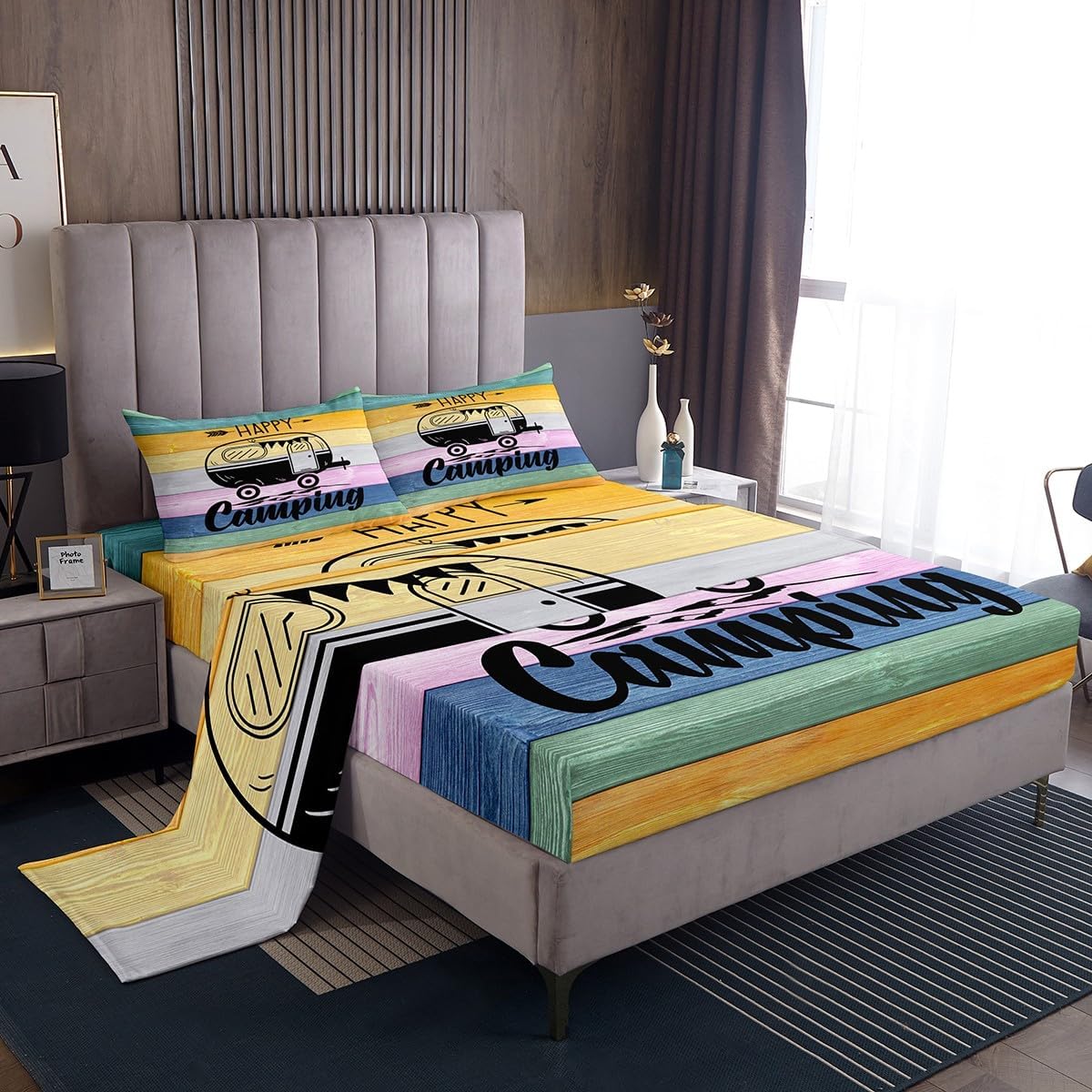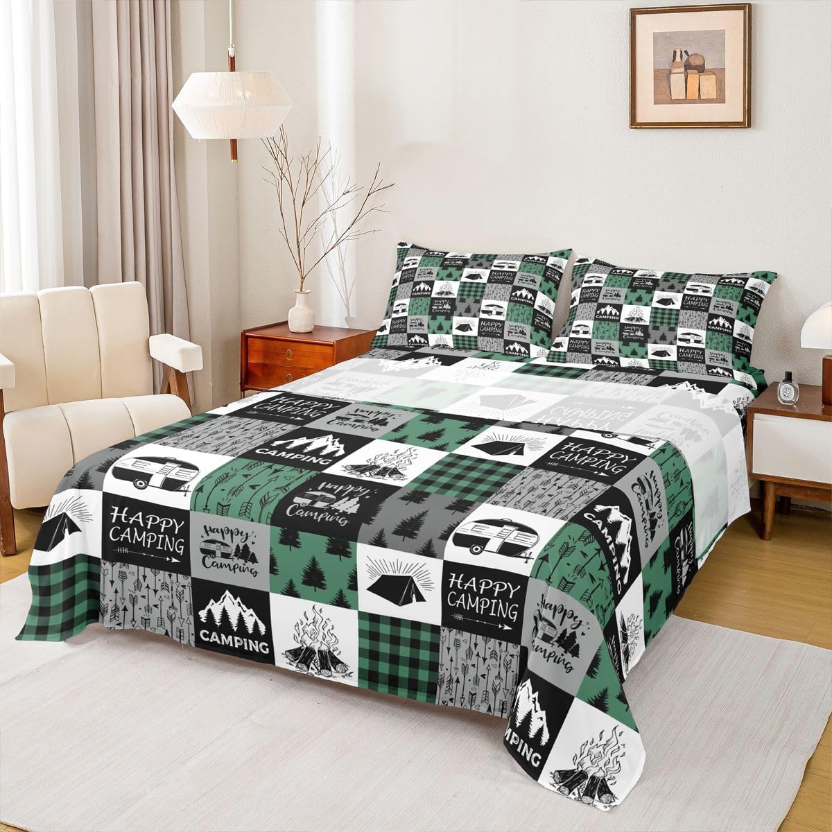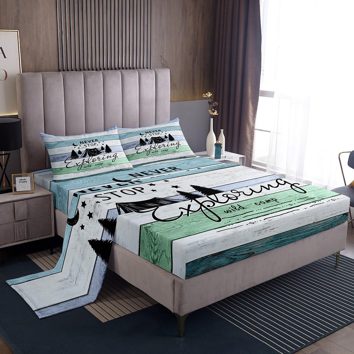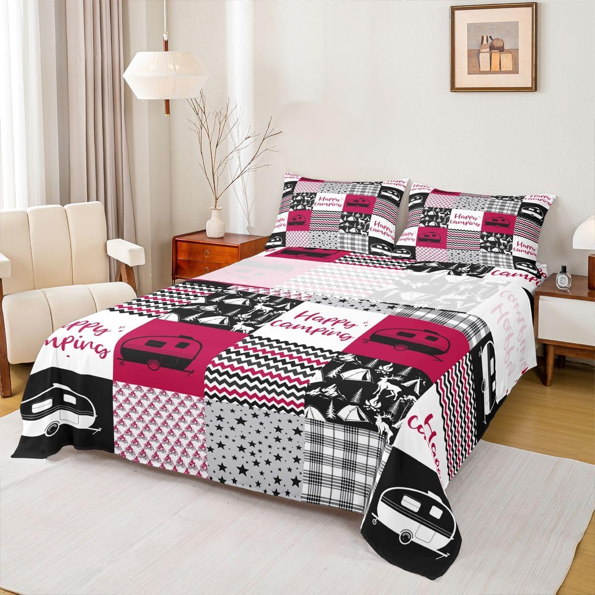Welcome to our store. We have specialized in home textile for many years.We are committed to providing customers with comfortable products. Size Imformation Twin size: 1 Fitted Sheet (39"x75"x16"), 1 Flat Sheet (96"x66"), 1 Pillowcase (20"x30"). Full size: 1 Fitted Sheet (54"x75"x16"), 1 Flat Sheet (96"x81"), 2 Pillowcases (20"x30"). Queen size: 1 Fitted Sheet (60"x80"x16"), 1 Flat Sheet (102"x90"), 2 Pillowcases (20"x30"). King size: 1 Fitted Sheet (78"x80"x16"), 1 Flat Sheet (106"x90"), 2 Pillowcases (20"x36"). Versatility We have many kinds of styles for you to choose.You can easily find a product that suits the style of your room. The item is not only fits your home (bedroom, guest room, living room, etc) or RV, but also a present for holidays or anniversaries (Chiristmas, New Year, Halloween, Thanksgiving day, birthday) for people who you love (your families, friends, relatives, boyfriend,girlfriend). Modern Design The luxury aesthetic bedding sheets are made by reactive printing and dyeing process. The pattern is clear, the color is lasting and bright, which will not fade after repeated washing. No harmful chemicals or dye substance. Personalized As a manufacturer of digital printed home textiles, we follow current trends and bring you the latest and stylish home textile products. The item will make the room decorated in exquisite taste.