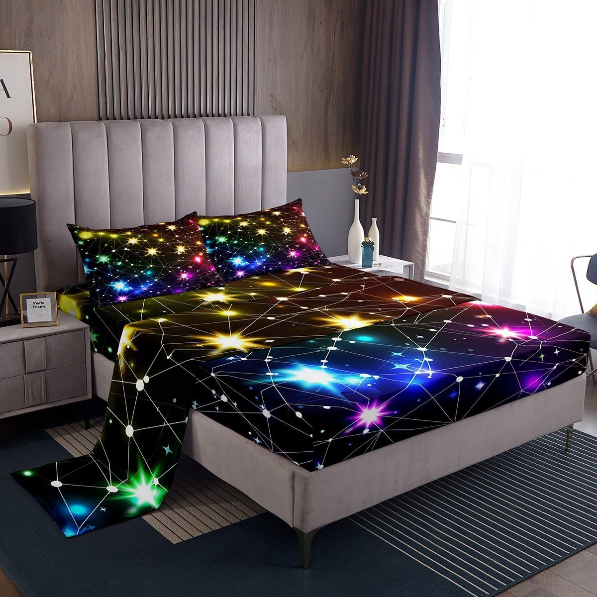 Package Include: Fitted Sheet, Flat Sheet and Pillowcase. High quality Fitted Sheet Set 3D Pattern Bedding Set, simply decorating your rooms any time you want, bringing you fresh feel for year round use. Size Information: Twin size 3pcs Fitted Sheet set: 1 Fitted Sheet 39"W x 75"L x 16"H, 1 Flat Sheet 66"W x 96"L, 1 pillowcase 20" x 30" Full size 4pcs Fitted Sheet set: 1 Fitted Sheet 54"W x 75"L x 16"H, 1 Flat Sheet 81"W x 96"L, 2 pillowcase 20" x 30" Queen size 4pcs Fitted Sheet set: 1 Fitted Sheet 60"W x 80"L x 16"H, 1 Flat Sheet 90"W x 102"L, 2 pillowcase 20" x 30" King size 4pcs Fitted Sheet set: 1 Fitted Sheet 78"W x 80"L x 16"H, 1 Flat Sheet 90"W x 106"L, 2 pillowcase 20" x 36" Personalize your bedroom: Beautiful design and colorful print, makes your bedroom unique and brings you a wonderful dream. Washing instructions: Machine wash separately in cold water,hang dry, do not bleach. Occasion: The soft Fitted Sheet bedding sets designed for Children ,Adult, Men, Women, Teens. This Bedding set is also suitable for full seasons, Spring, Summer, Autumn and Winter. More Decor: Search our store to get more christmas theme, new year theme, autumn fall theme, any holiday theme, modern abstract, farmhouse rustic theme, simple pattern, garden flowers etc. home decoration. Warm Tips: 1.Please allow 1-3cm error due to manual measurement. 2. Actual color may vary from the color on your screen due to monitor color restrictions.