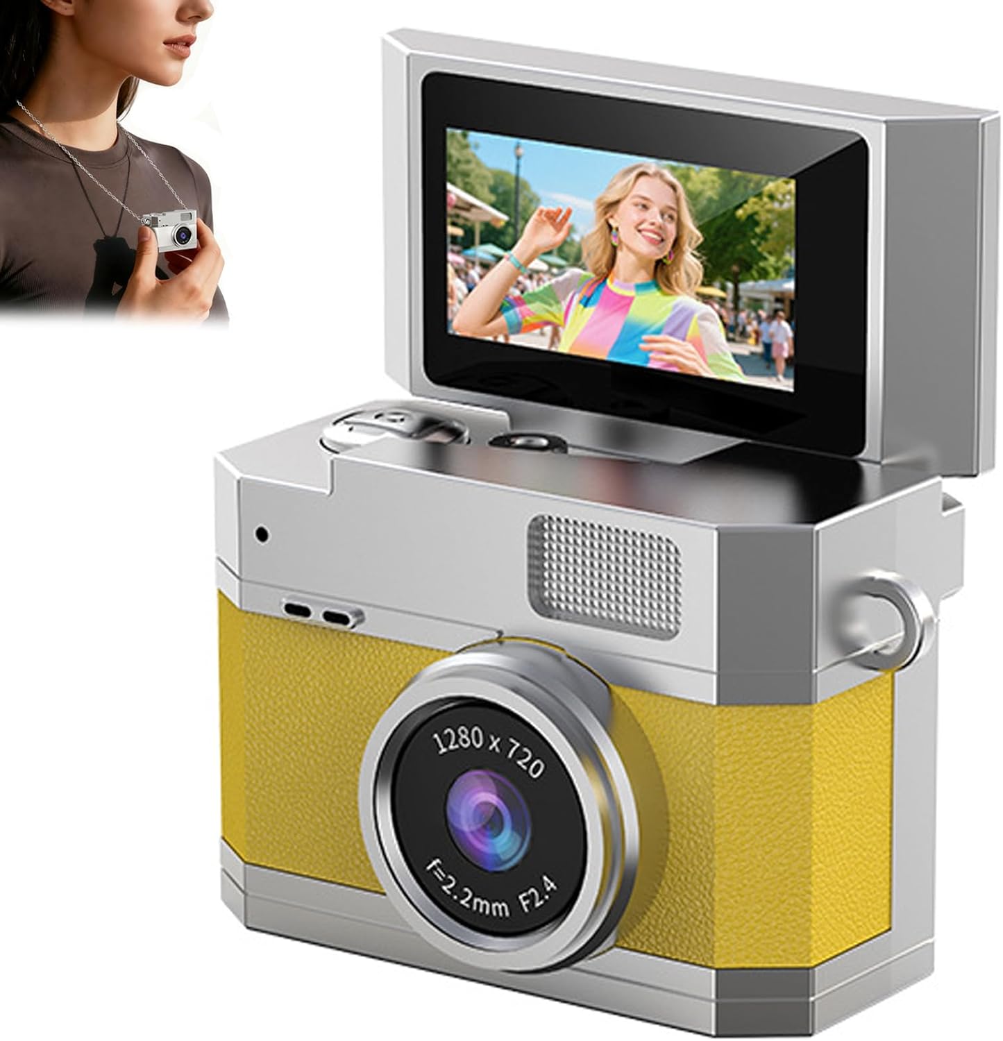 This ultra-portable, thumb-sized keychain digital camera with a 180° flip screen, retro CCD HD performance, built-in beauty filters, and simple one-touch operation is ideal for beginners to capture daily, travel, or campus moments for social media or memory-keeping. Compact: Without card 32GB memory card + card reader + OTG adapter 64GB memory card + card reader + OTG adapter Product Specifications Pixels: 720 HD pixels (supports ultra-clear image output) Screen: 180° flip viewfinder Functions: Photo/Video Pixel Range: 5MP Storage Media: TF Card Battery Life: Over 5 hours Colors: Black, White, Pink, Green, Yellow, Blue, Orange, Brown, Purple Product Dimensions: 44*25*27mm LCD Screen Size: 0.96 inch Charging Time: 1.5-2 hours Charging Interface: Type - C Package Includes: 1 Pc * Thumb-Sized Flip Screen Mini Camera 1 Pc *Chain 1 Pc *Chain link Tips: Due to manual measurement, please allow an error. Due to the different display and different light, the picture may not show the actual color of the item. Thanks for your understanding.t shopping experience!